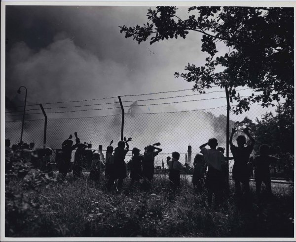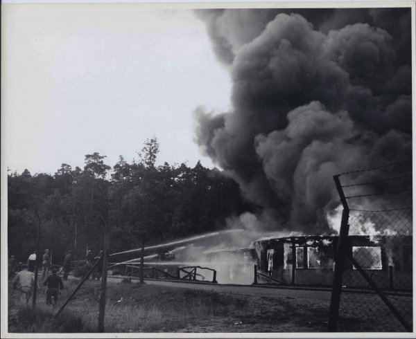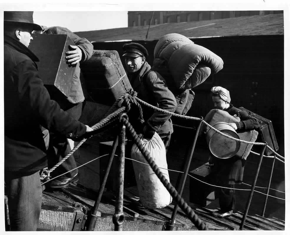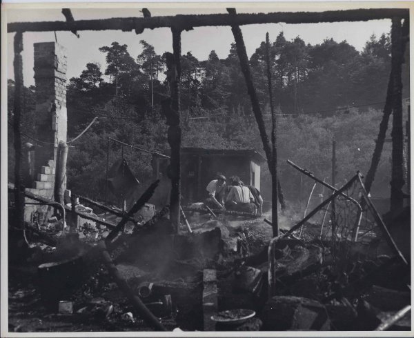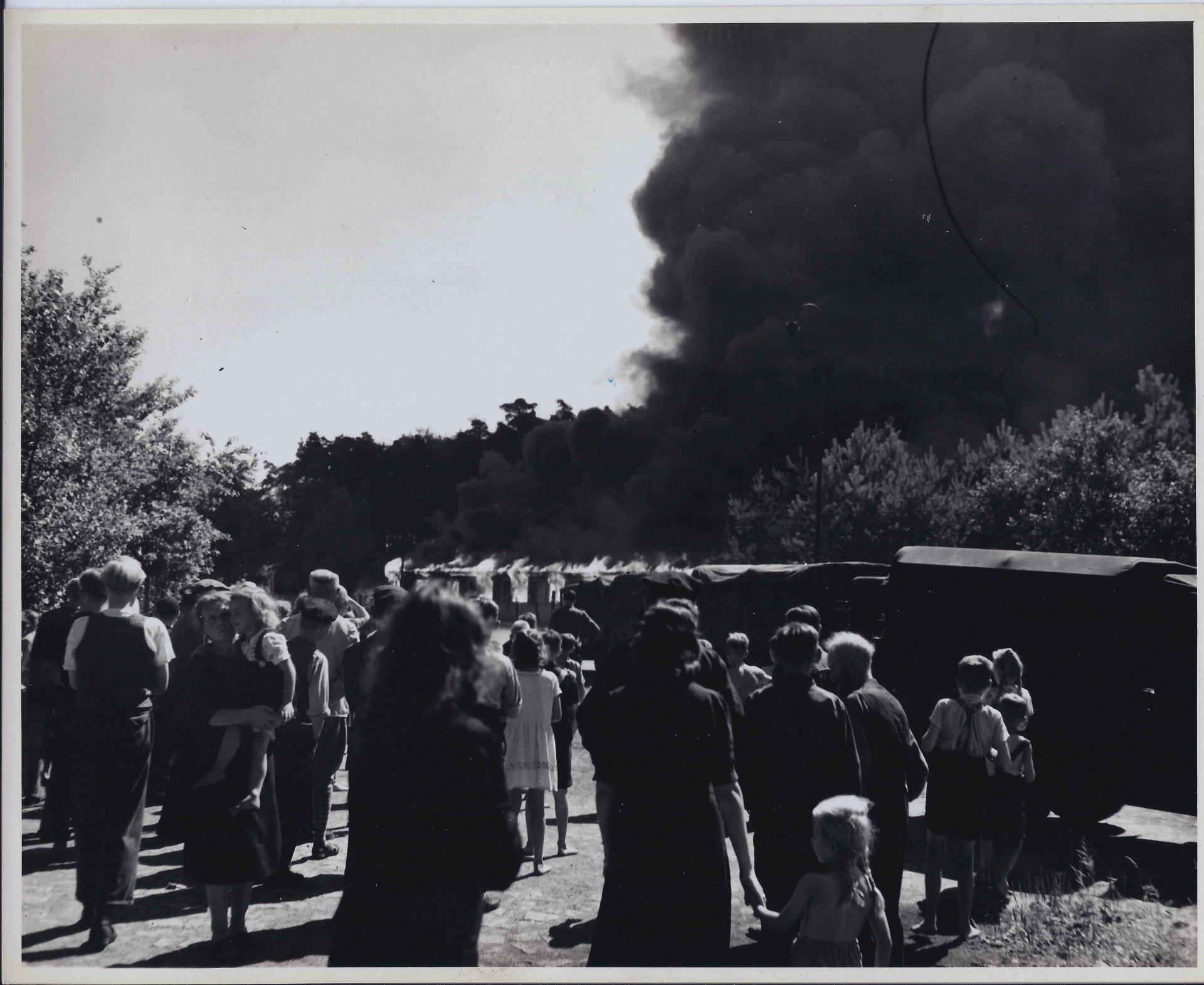 The next set of photos were taken when a fire destroyed the UNRRA administration camp at Lubeck, Germany, in 1946. Despite the best efforts of firemen, the camp was almost entirely destroyed, and the refugees found themselves displaced once more, having quickly salvaged whatever belongings they could carry.