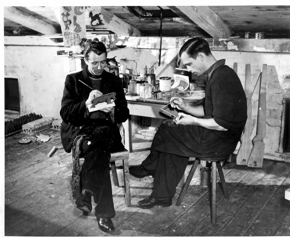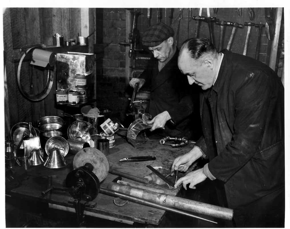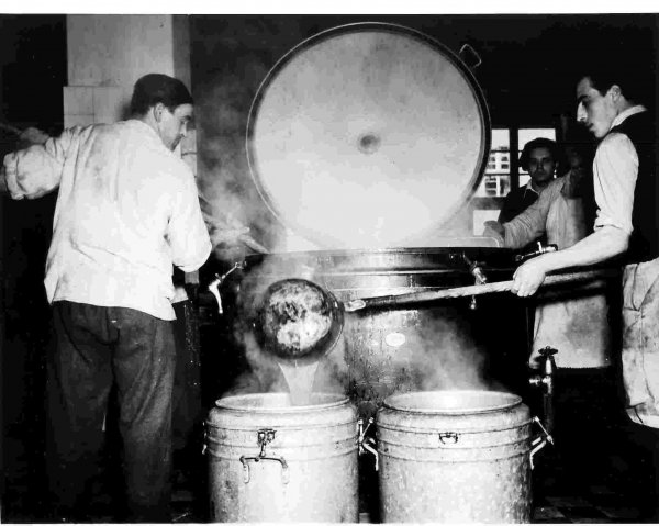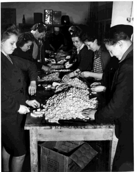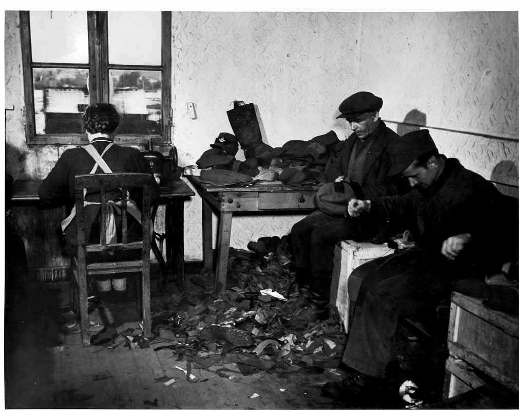 This first group of photos shows various workshops. Scrap tin cans are being recycled into jewellry, teapots, etc., scrap wood is being used to make cots and toys (although, rather poignantly, leaning on the wall behind the man on the right painting the Noah's Ark figures, pieces of wood have been shaped ready to be made into rifles), and parts of shoes are being salvaged.