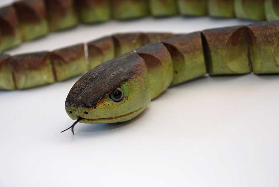 I have since seen similar items for sale in shops, but this was made years before they were so readily available, and I have never seen one with such a realistic movement. It is also larger than others I have seen, at around two feet in length and its weight makes his movement eerily convincing. Despite the fact that it is obviously not real, several people with an aversion to snakes have not been able to go near it! I think he is rather a noble beast.