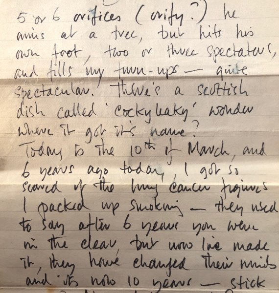 I recently found a letter, written to my sister, in which Dad describes what happened after our dog, Gillie, was recovering from an operation to remove bladder stones. Although we were all worried about Gillie, Dad’s sense of humour shone through, and he included a little sketch to illustrate his description.